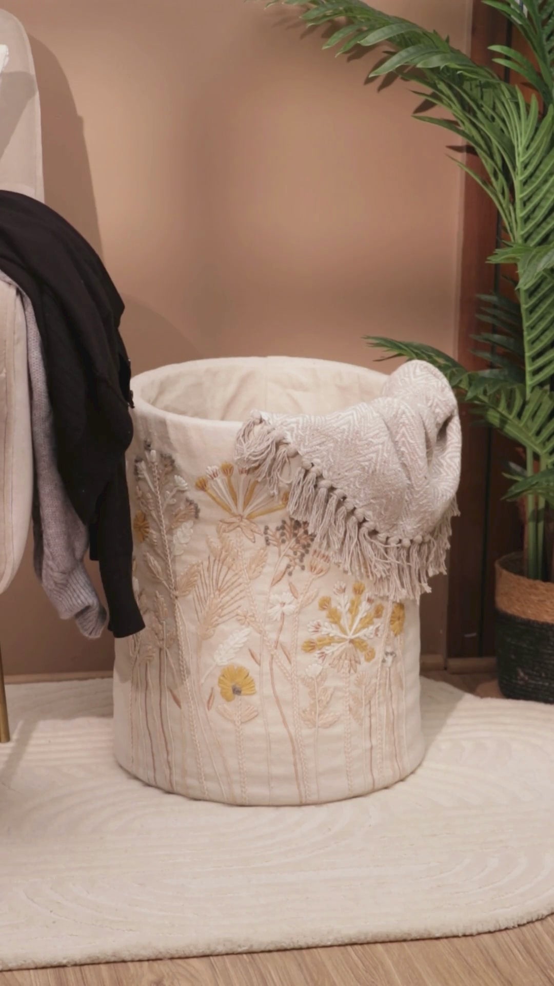 Autumn Flora Embroidered Storage Basket - Mustard Beige