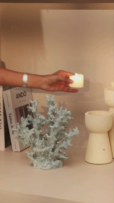 Inspired by the tall bird's nest corals found in ocean reefs, this chic sculpture is a lovely addition to your decor! It has a unique textured finish to mimic the porous nature of the corals perfectly. Colored in a azure blue hue, it has a modern look to fit your contemporary home effortlessly.