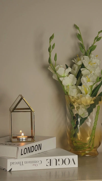 Light up your home with this sweet tealight holder! Designed to resemble a traditional hut shape, it reimagines this nostalgic motif in a modern style. Crafted with glass and metal, it has a minimal style that matches any decor style effortlessly.