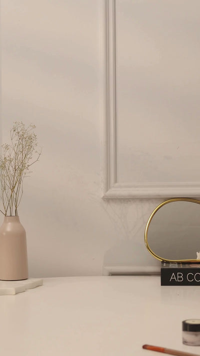 A combination of taupe, gold, and grey colors give this cosmetics organiser a modern look to match your aesthetic. You can also use this organiser to streamline your work-desk or entertainment area by keeping necessary items neatly within view!