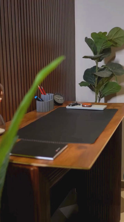 Add a modern touch to your desk with this unique pen-holder crafted entirely from concrete. It has a circular holder for your writing implements and a pocket on the side for sticky notes or tapes. A sturdy heft ensures that it will stay in place and not topple, creating a smooth experience that helps your workflow.