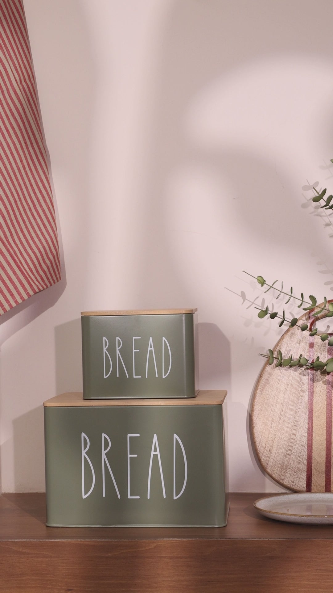 Organise your kitchen neatly with this set of two bread boxes! Crafted from metal, they have rustic-chic look with a bamboo lid and are perfect for storing any kind of bread, whether square breads, buns, bagels, baguettes and more. These boxes are black in color for a modern look and each of them have been neatly labelled in white for quicker sorting. These jars can also easily be on display in your kitchen or pantry!