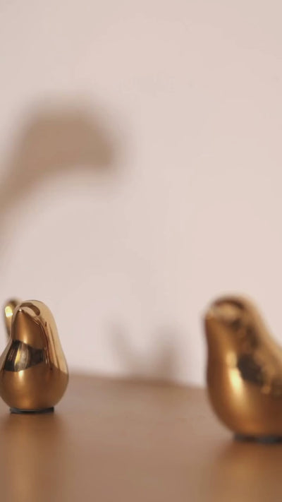 Enhance your space with this set of delightful sculptures in the shape of sweet birds. Crafted from ceramic with a glossy gold finish, they add instant glam to any setting in a subtle way.