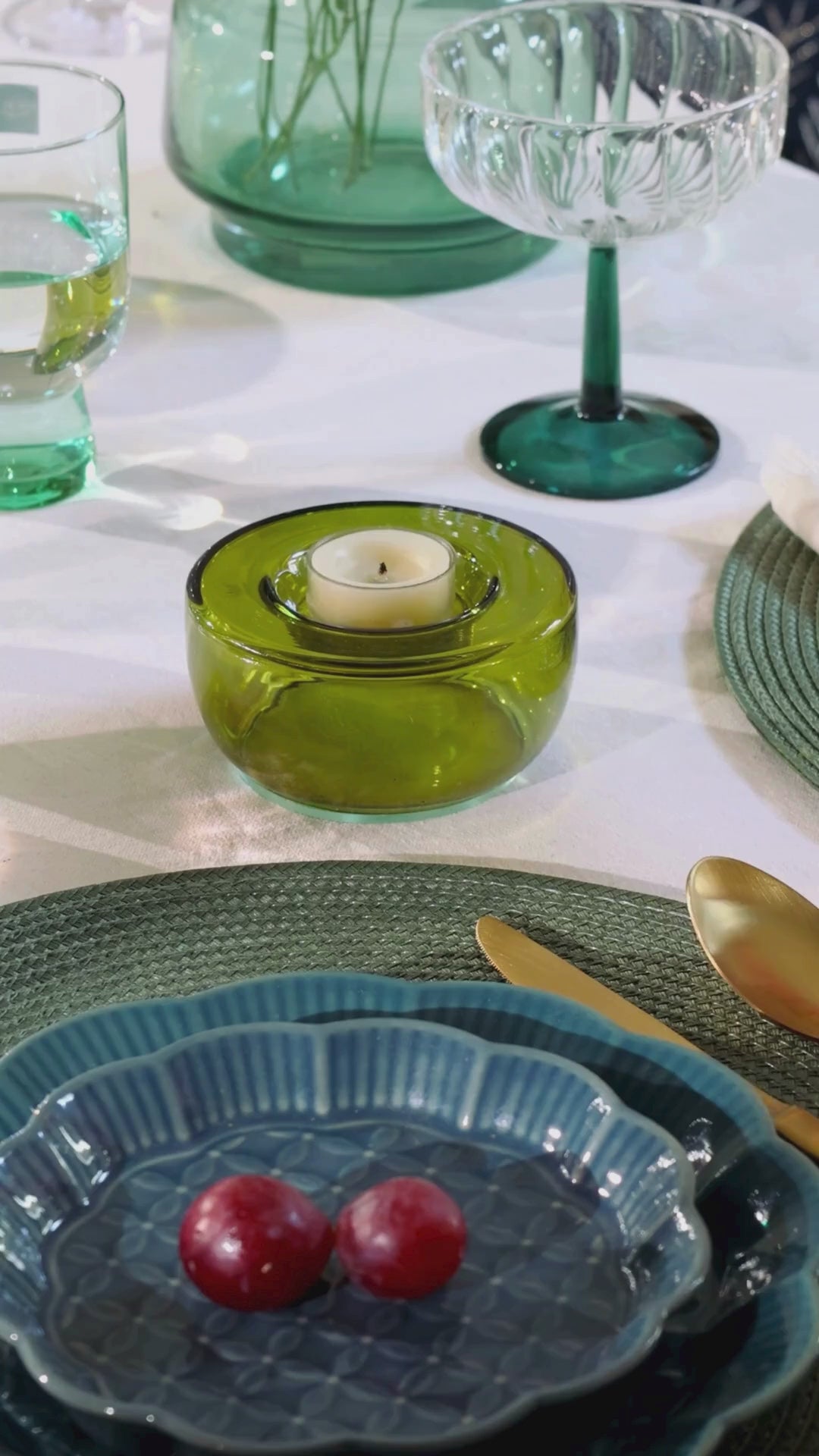 Add a soft glow to your decor with these two tealight holders! Crafted from high-quality glass, these tealight holders can be used for tealights and decorative candles as well. Shaped like a semi-circle, each one has a generous divot on top to place the candles.