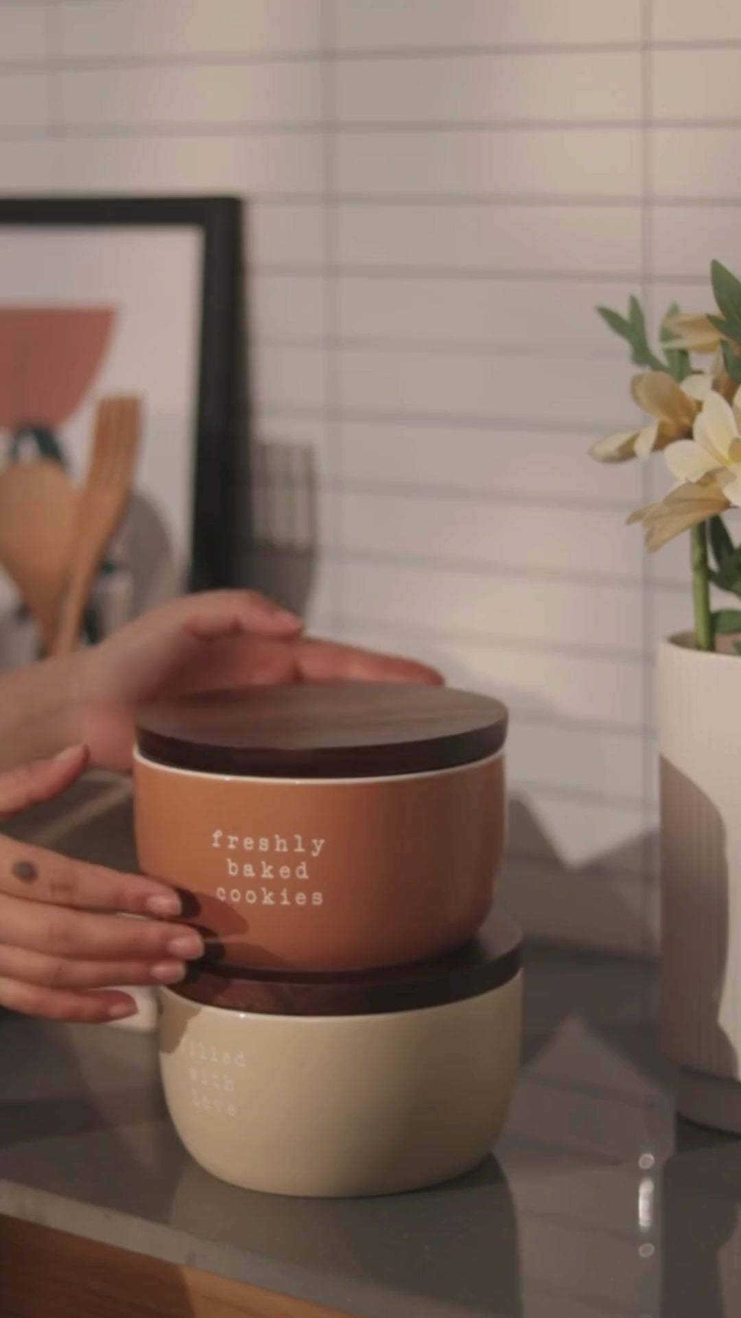 The lid is made from fragrant acacia wood and is a lovely compliment to the matte beige color of the jar. You can also use the jar as a small bowl without the lid, to warm up your cookies or snacks as it is oven and microwave safe. Place it at your desk with sweet treats inside for a pick-me-up during the workday!
