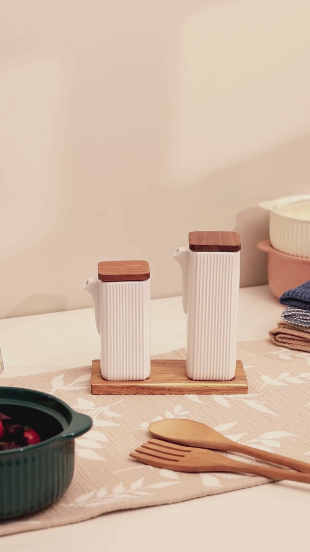 The matching tray is also made from wood and has slots for each bottle. The black color with the textured finish, give the bottles a lovely minimal look that will match most tableware effortlessly. This set can also be used for other condiments like soy sauce, vinegar, chili oil and others!