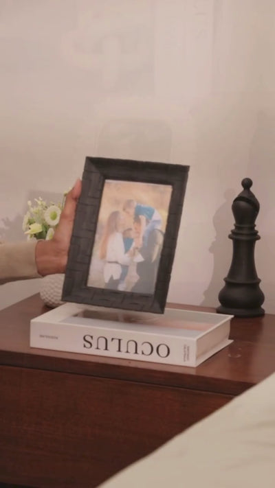 Display your treasured memories stylishly with this sleek photo frame! It has a modern style with a design of interlocking stripes that have been woven together to create a chic textured finish. Colored in a charcoal-black hue, this photo frame is a timeless accent that will match any decor style effortlessly.