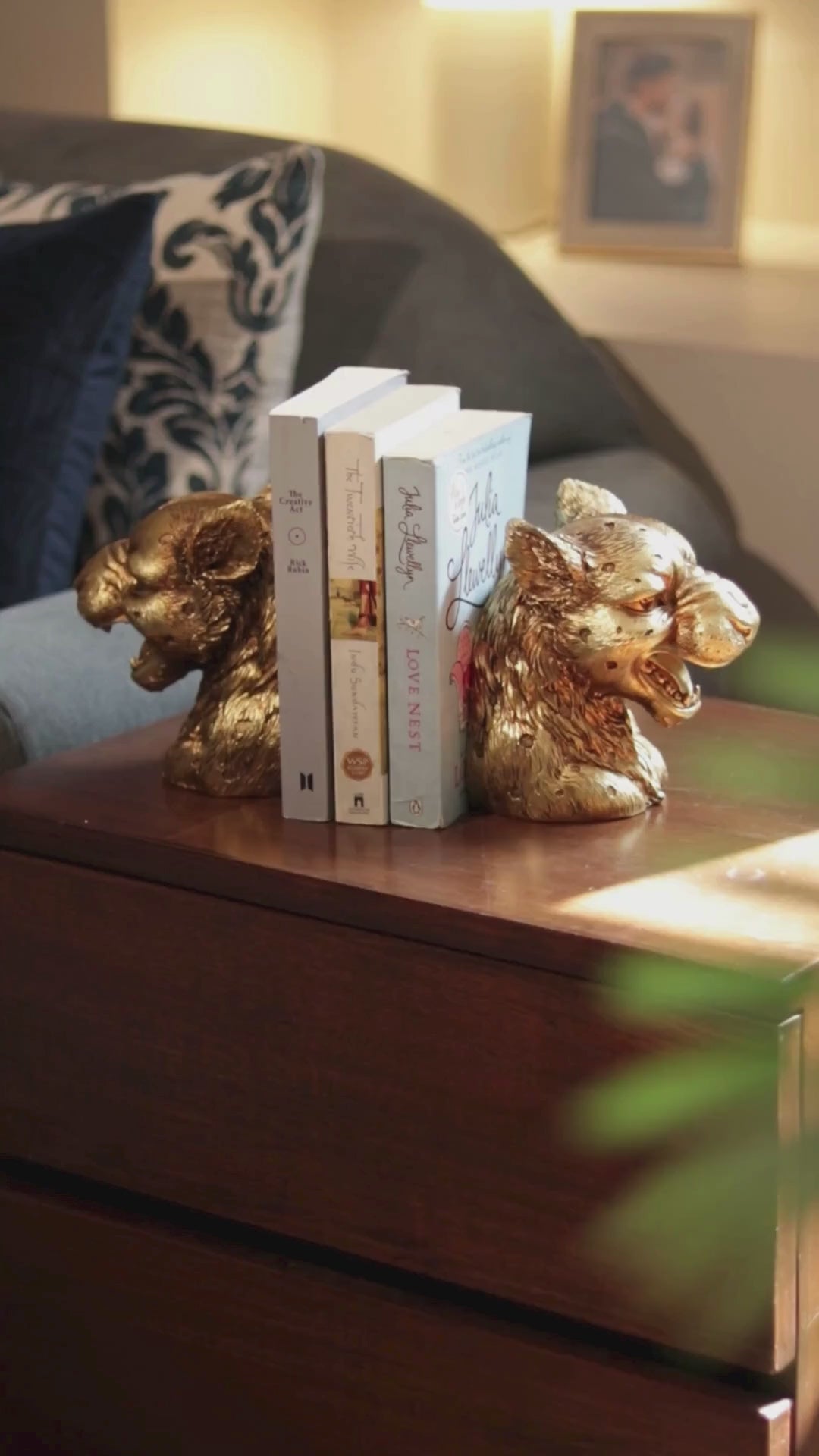 Lux Jaguar Head Bookends, Set of 2 - Gold