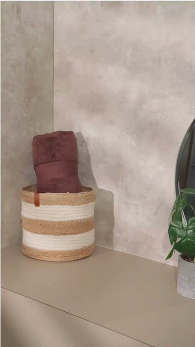 Featuring alternating stripes of moonj and jute, the planter has stylish striped look. The textural contrast of the stripes is further emphasized by the natural color of the moonj and jute that has been painted black. Finished with a sleek PU tab at the rim, this set of two planters is perfect for indoor use at your home or office!