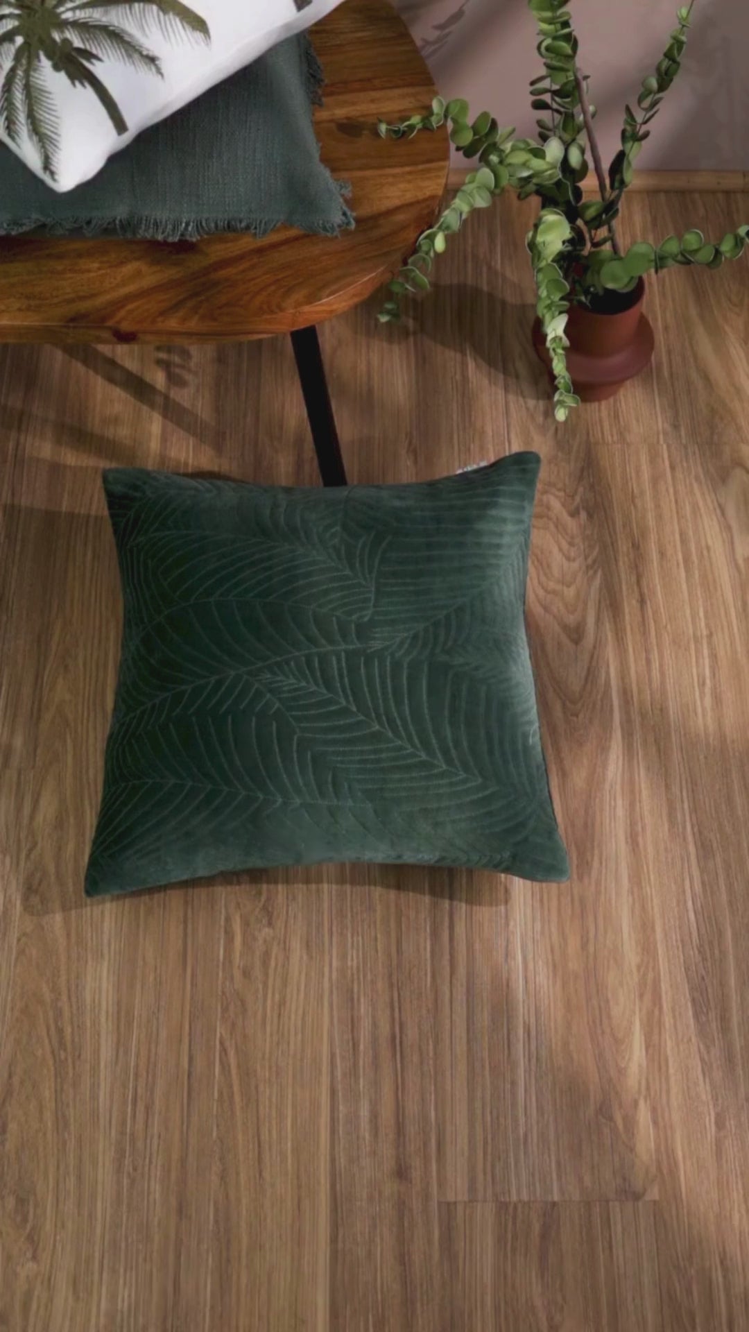 Palm Jungle Embroidered Cushion Cover 45x45cm - Green Brown