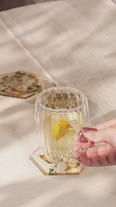 Hexagonal in shape, each coaster has a generous size to accommodate all kinds of drinkware from everyday glasses to beer mugs. A stunning addition to any table, whether coffee, dining, or work, this coaster set can also be used as a pedestal for your succulents or crystals!