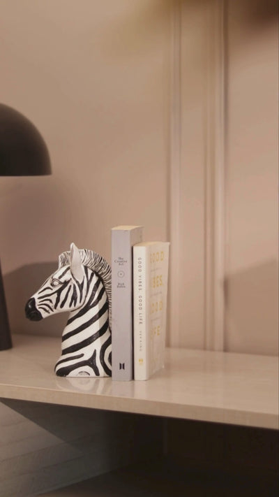 Accent your favourite titles with these chic bookends! Sculpted to look like the iconic zebras of the African savannah, these bookends can accommodate a number of books between them. Details of the zebra heads have been carefully sculpted from the pointy ears to the distinctive muzzle.
