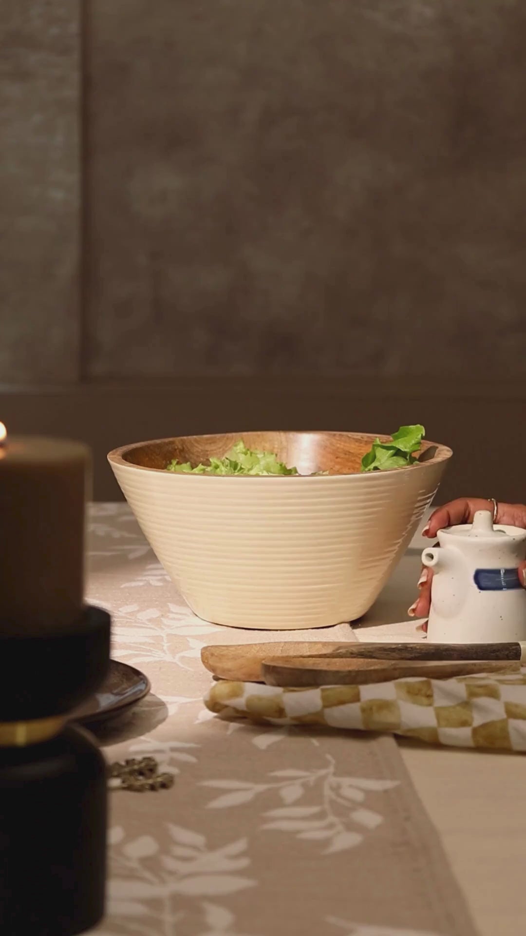 Serve up your favourite cuisines in style with this chic bowl! Crafted from sustainable mango-wood, it has an elegant enamel finish around the exterior. The enamel has a ribbed texture in a cream color that beautifully contrasts the natural color of the mango wood.