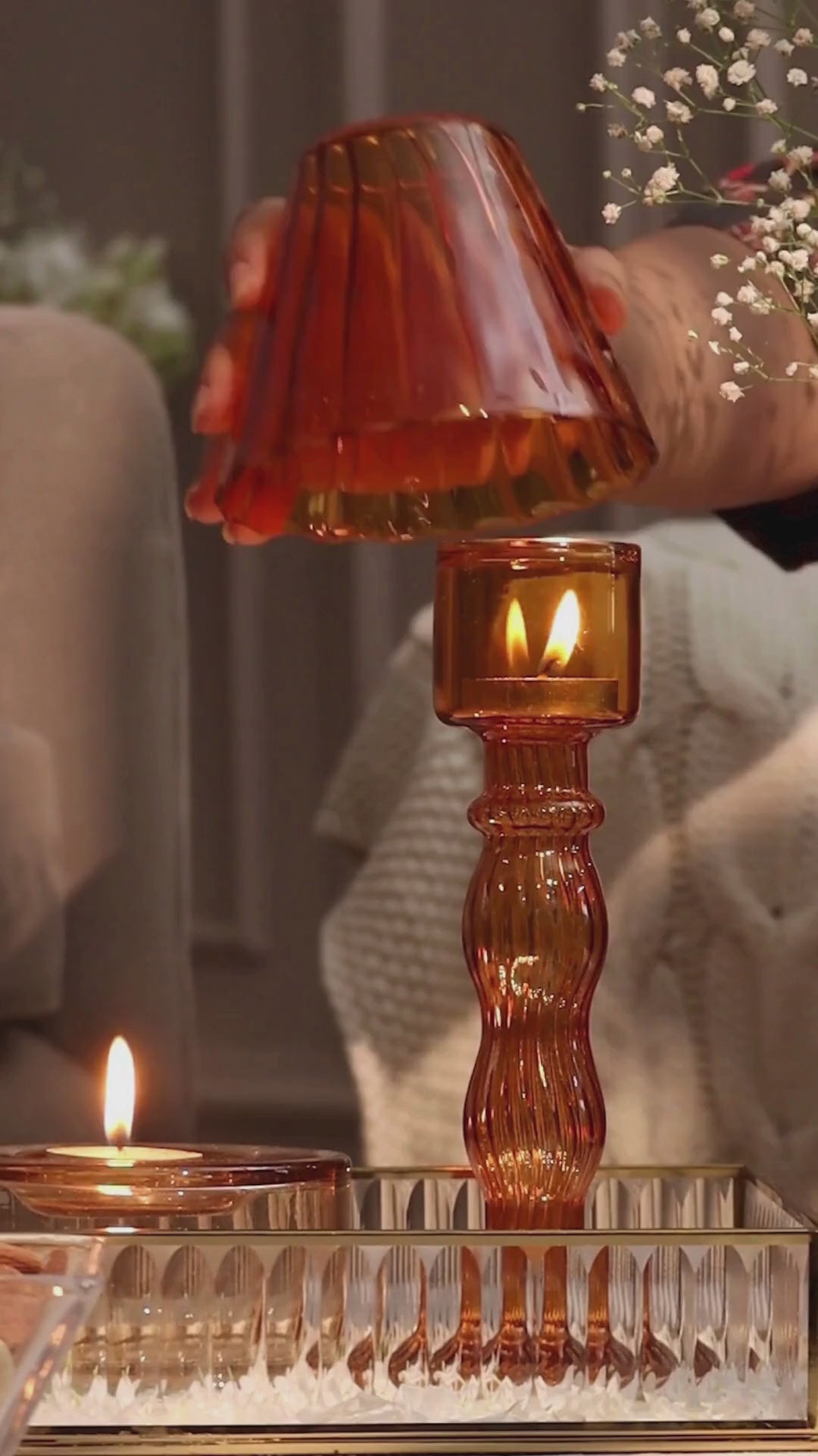 Sintra Glass Tealight Holder Lamp - Burnt Orange