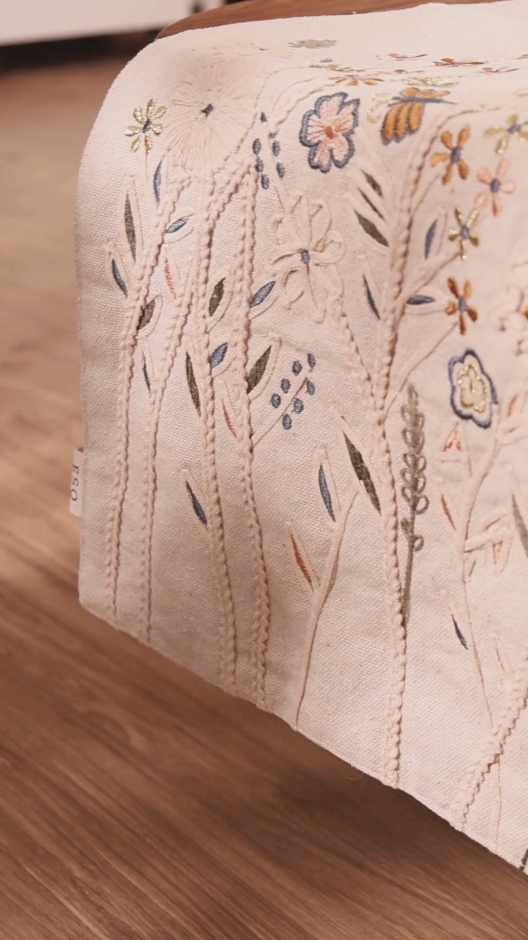 Spring Meadow Embroidered Table Runner - Gold Beige