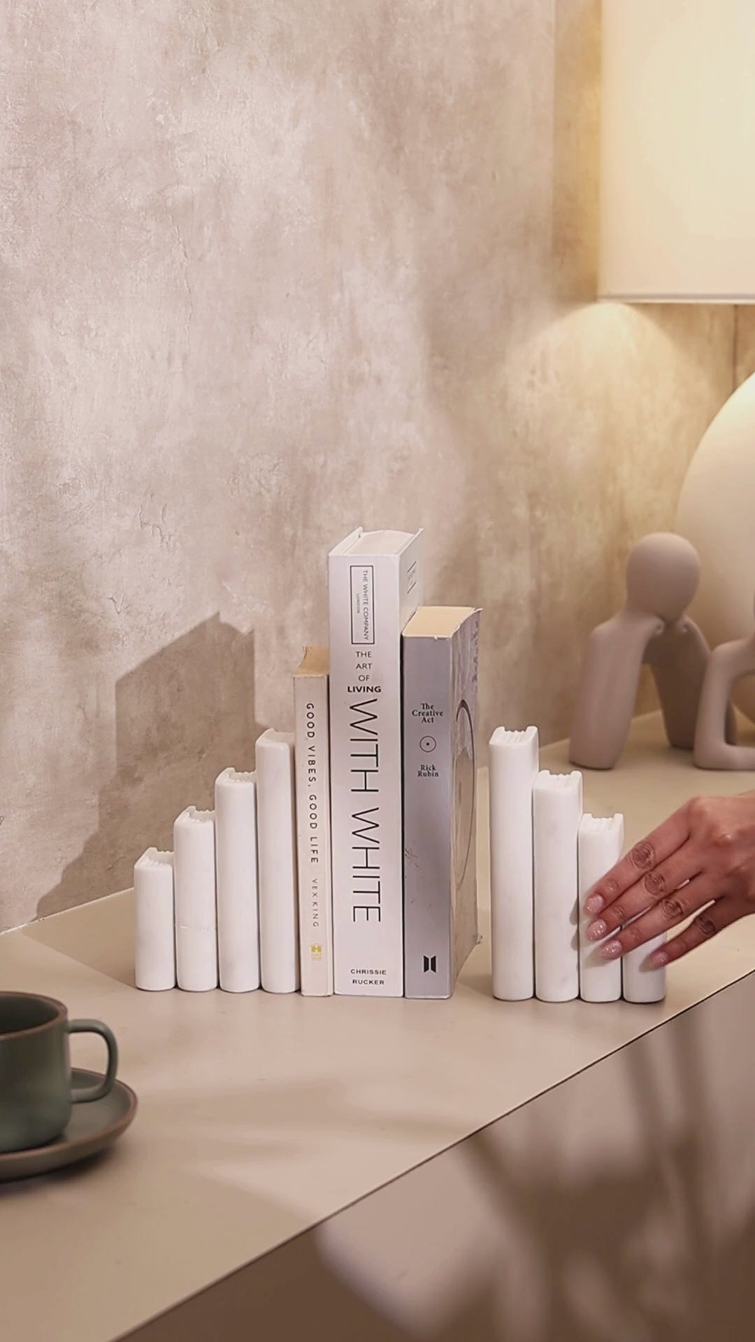 Create a playful tableau with this set of chic bookends that have been shaped to resemble a stack of books. They can be used horizontally or vertically to create different tableaus as per your tastes. Crafted from white marble, they have a subtly shimmering effect that elevates the look.