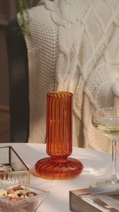 Classic silhouettes meet modern inspiration in this elegant vase! Crafted from high-quality glass, it has a classic pitcher-like shape in a warm amber hue. On the inside of the vase, a pattern of protruding lines elevates the look while keeping it smooth to the touch.